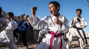 كاراتيه الأطفال بغزة.. رمال الشاطئ بديلا لصالات دمرتها إسرائيل